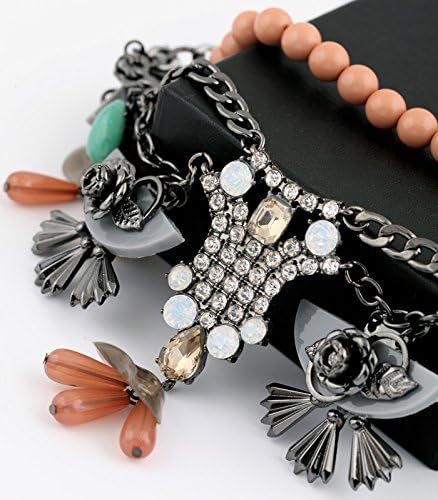 - ★ COLOR: Colorful: Mint and Gray Acrylic Stones, Black Metal Flowers, & Coral Beads with Coral Beaded and Black Metal Chain
