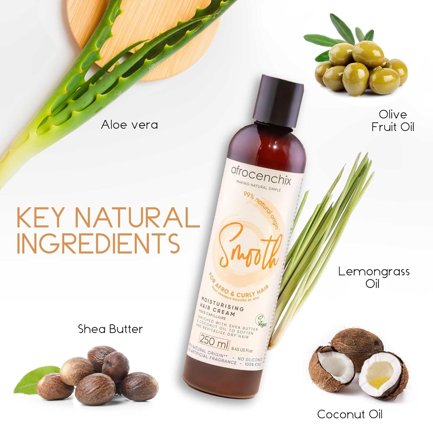 - Deep Moisture for Afro & Curly Hair Smooth hydrates dry strands and softens coils, kinks, and curls with rich natural ingredients—perfect for daily moisture without buildup.