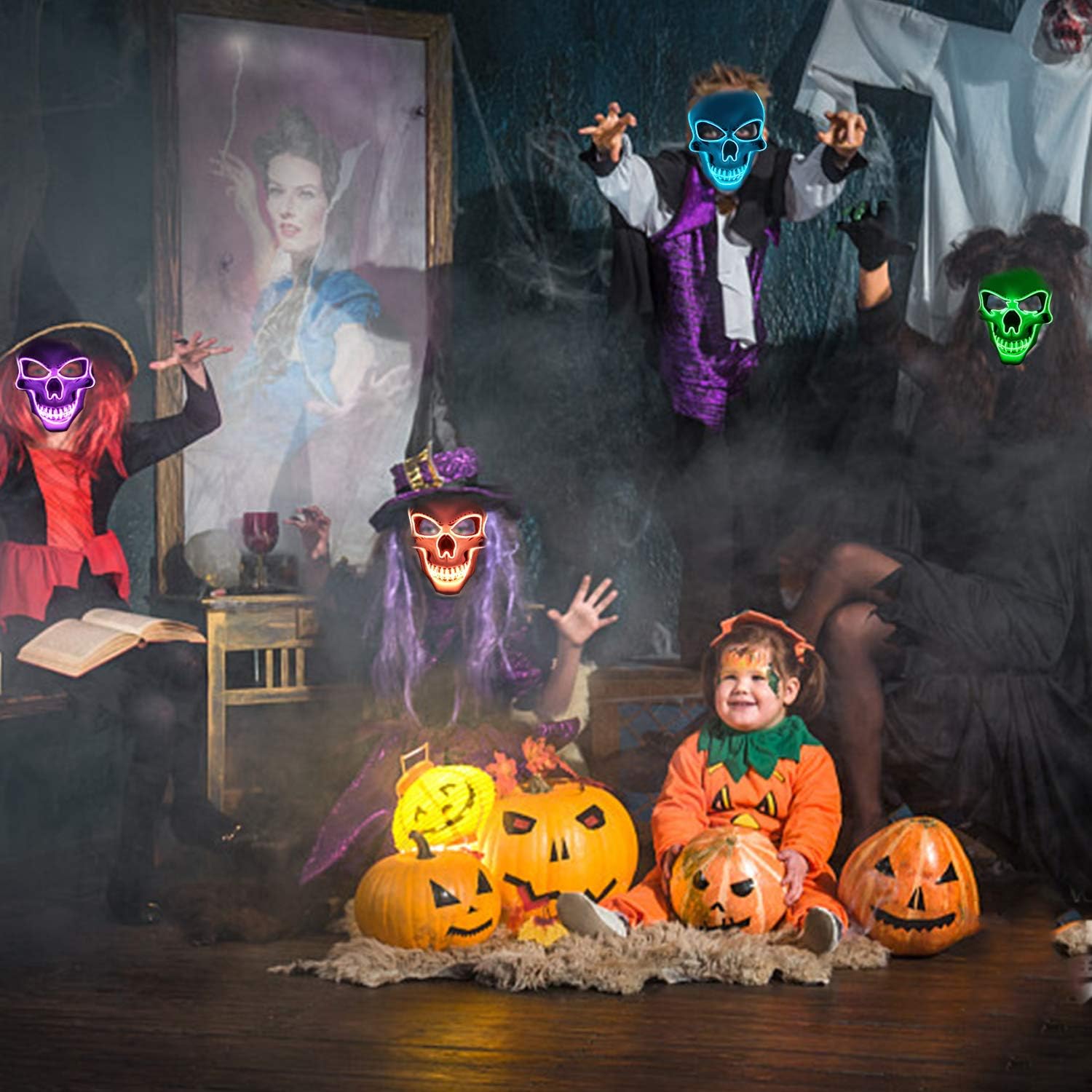 - 【Halloween Any Party Occasions】A scary face and pose will let you get more candy on halloween.EASY TO USE BY TURN ON LIGHT(YOU NEED EXTRA BUY BATTERY,IT NOT INCLUDE)The Mask Can be used on many occasions, such as Party, Rave Parties, Discos, Clubs, Halloween,Birthday, Festivals and other Events.
