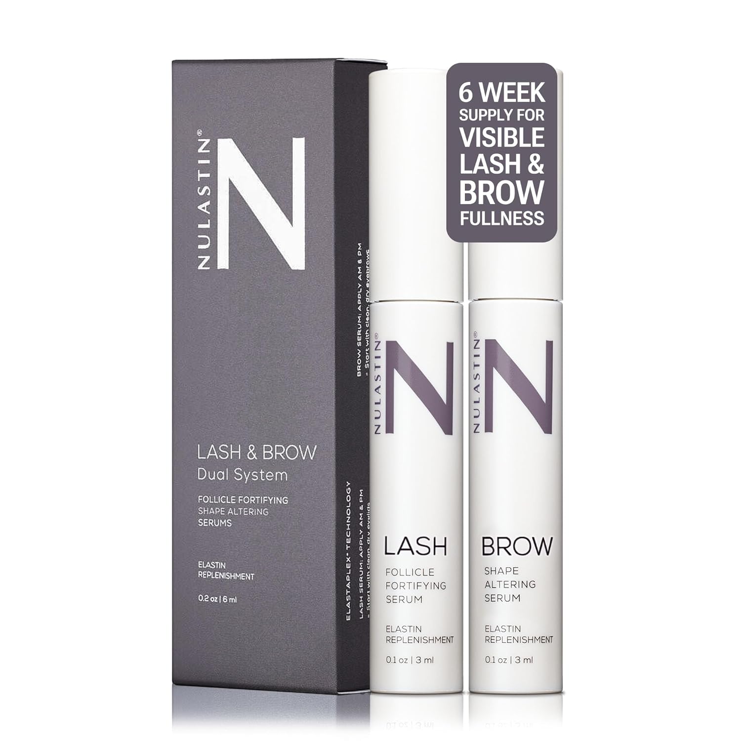 NULASTIN Eyelash Serum & Brow Serum - Lash & Brow Dual System - Eyebrow & Eyelash Enhancing Serums with Keratin & Peptides for Fuller Looking Lashes & Brows (2 Count, 0.1 Fl Oz Each)