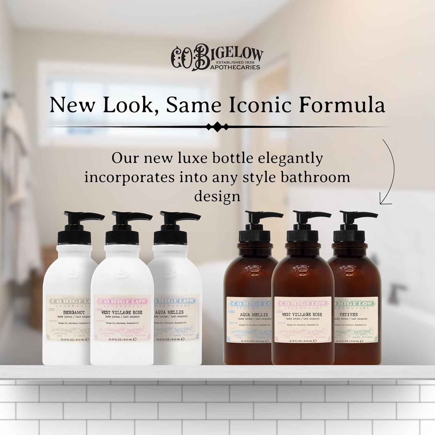 C.O. Bigelow West Village Rose Body Lotion, Iconic Collection Moisturizing Body Lotion with Shea Butter, Borage Oil & Grapeseed Oil, 10.5 Fl Oz