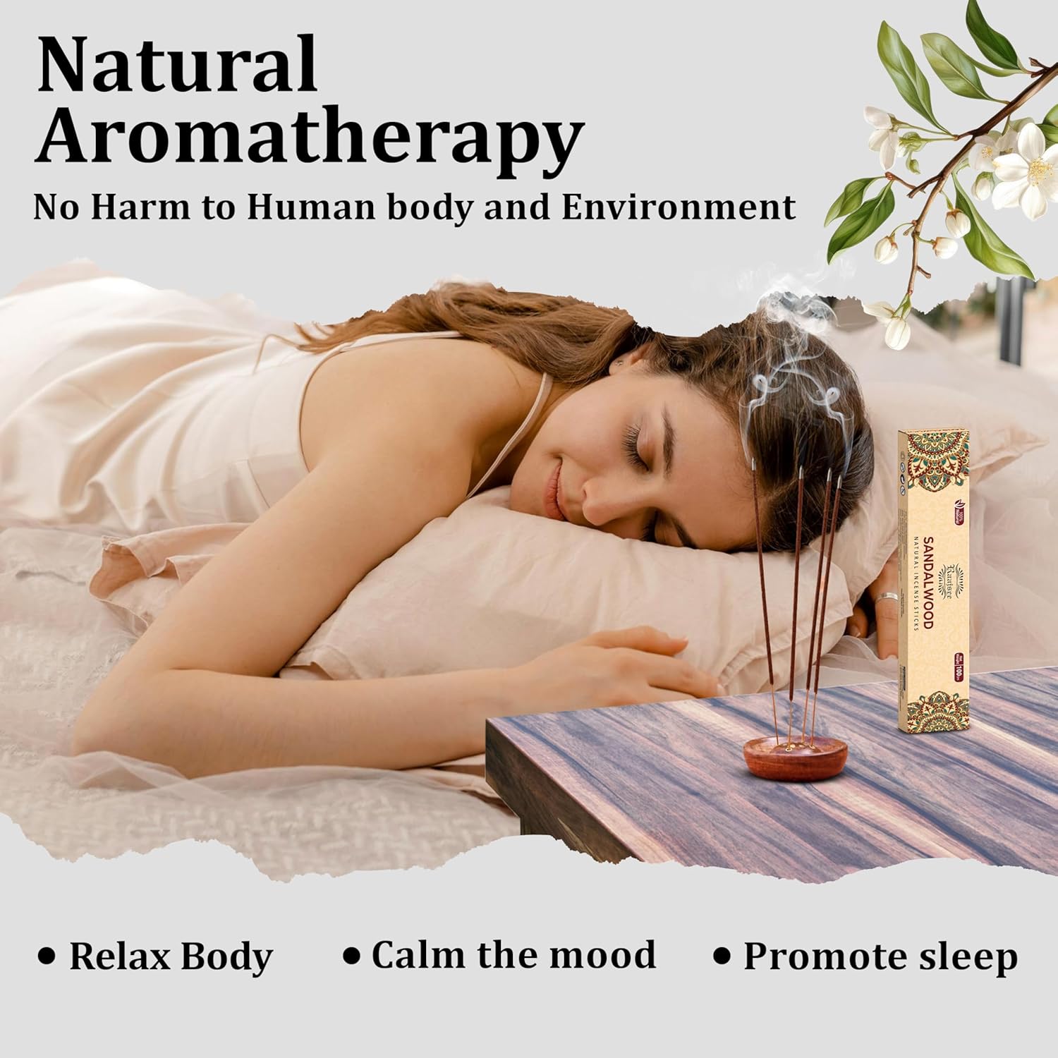 - 100% NATURAL -Raajsee incense sticks Sandalwood are completely handmade MADE FROM SCRATCH by blending natural resins, Herbs, natural incense with aromatic wood powders, charred coconut powder fragrant oils, and honey. No Dipping in Toxic Chemicals, organic incense sticks non toxic
