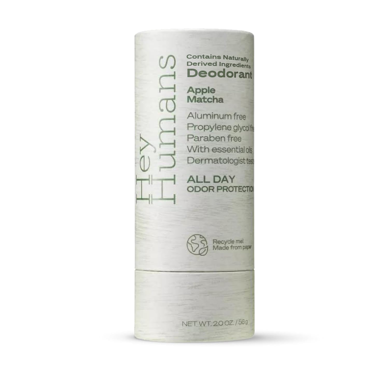 Hey Humans Deodorant, Aluminum Free Deodorant for Women and Men, Contains Naturally Derived Ingredients, All Day Odor Control, Refreshing Essential Oils, Earth Friendly Package, Apple Matcha