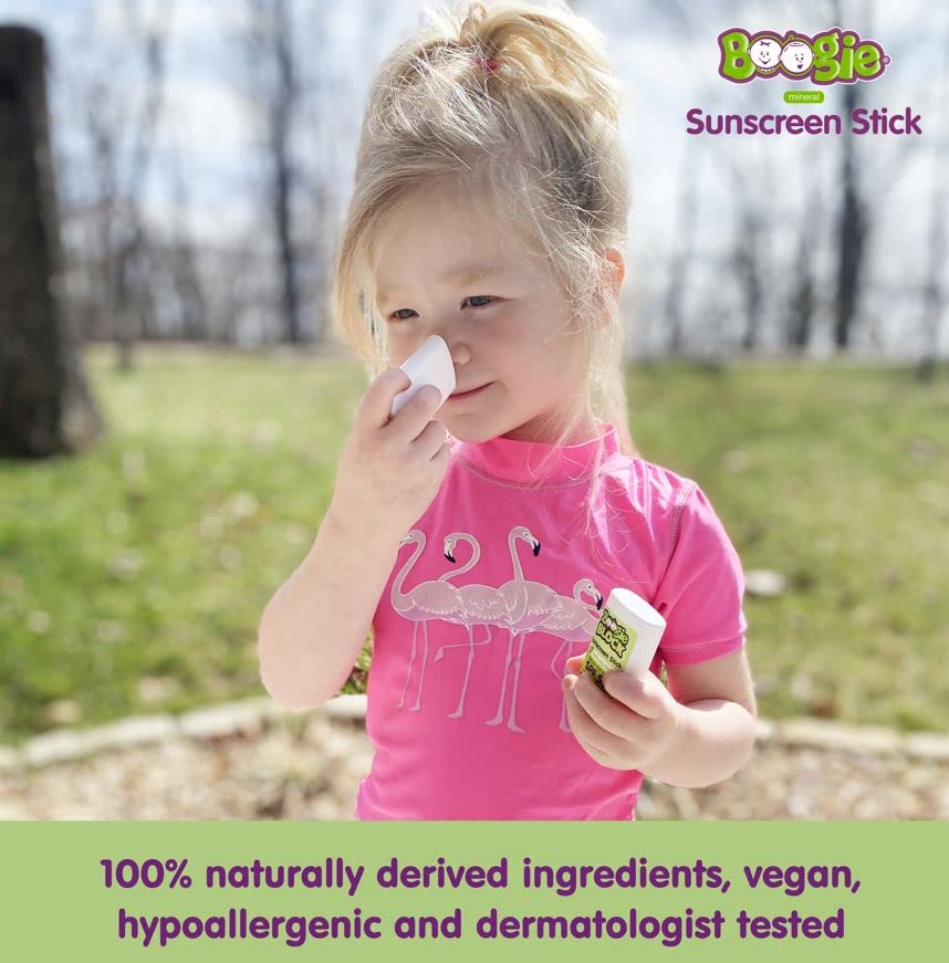 - BROAD SPECTRUM MINERAL SUNSCREEN STICK: Boogie Mineral Sunscreen Stick provides broad spectrum SPF 50 to help prevent sunburn and protect sensitive skin from harmful UVA and UVB rays. It is water resistant for up to 80 minutes.