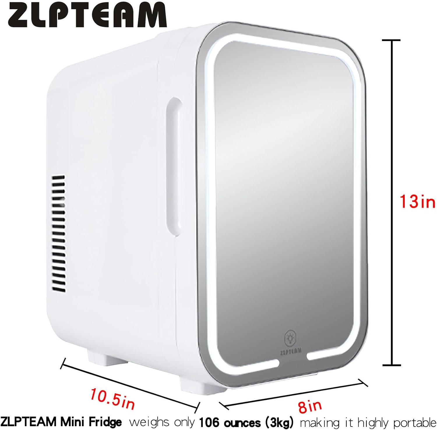 Mini Fridge with Mirror Door & Adjustable LED Lights - 8L Cosmetic Skincare Fridge for Bedroom,Dorm,Mini Car Refrigerator Portable Quiet Cooling,Gift for Women