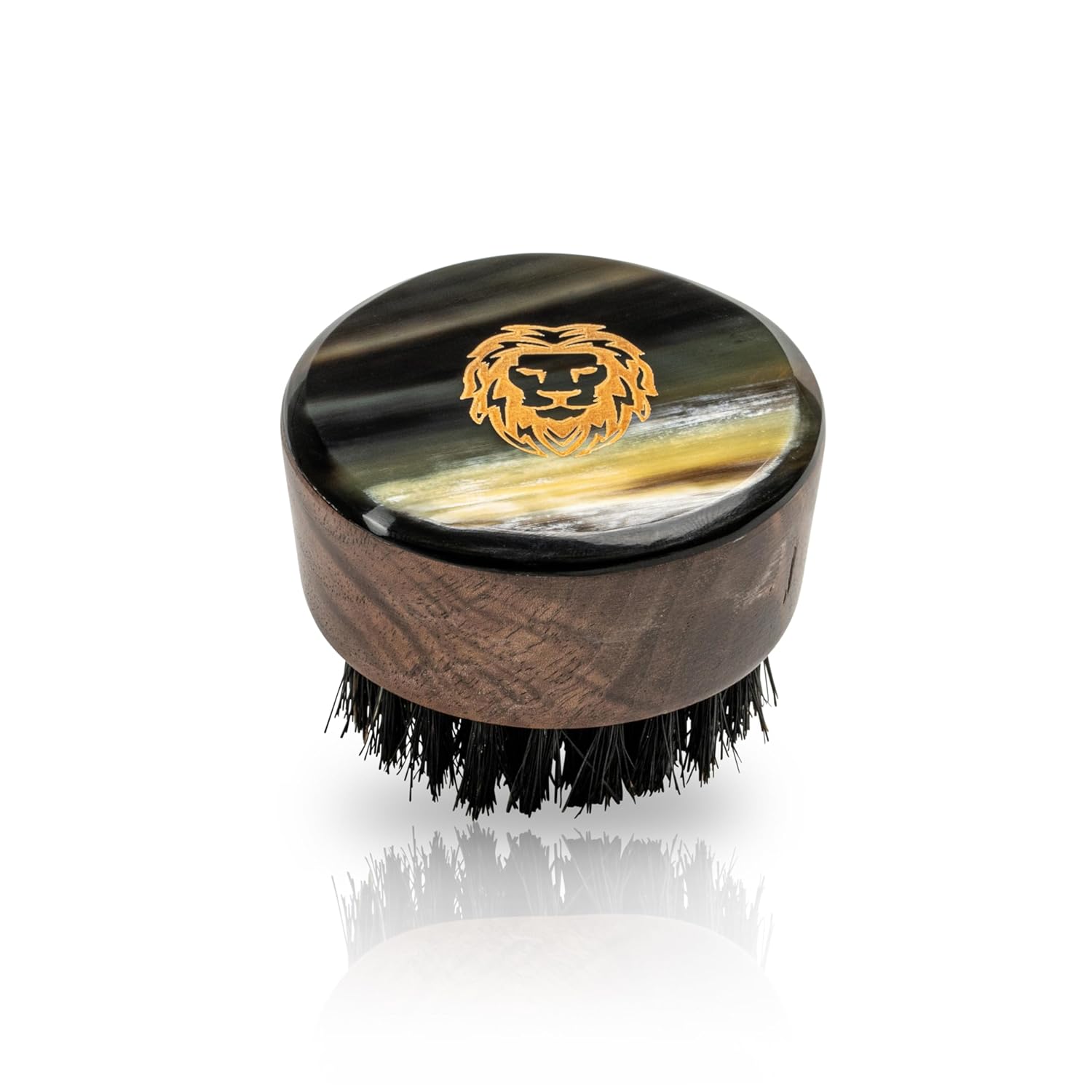 - Dimensions: 5.7 x 5.7 x 4 cm - Natural boar bristle; ox horn and black walnut wood base made to fit perfectly in your hand!
