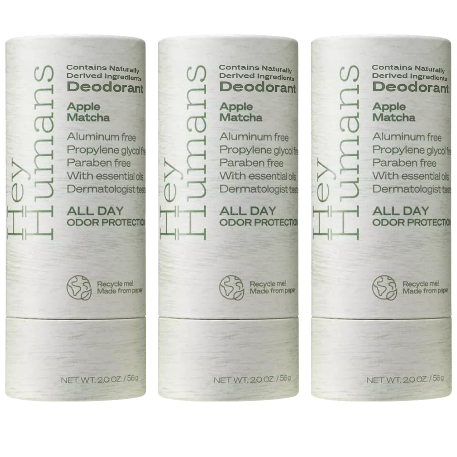 Hey Humans Deodorant, Aluminum Free Deodorant for Women and Men, Contains Naturally Derived Ingredients, All Day Odor Control, Refreshing Essential Oils, Earth Friendly Package, Apple Matcha