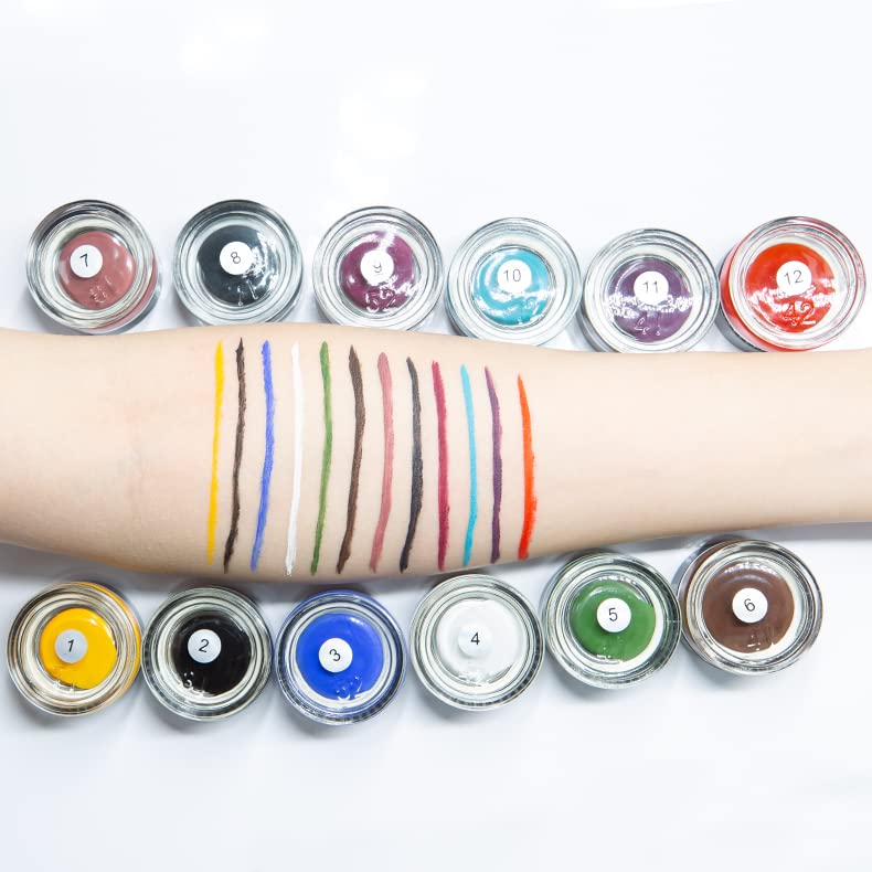 - 【GEL EYELINER KIT】 This creamy gel eyeliner is available in 12 colors and two professional eyeliner brushes are given as a gift. The classic color can meet all your daily eye makeup needs, the creamy texture is suitable for creating all kinds of eyeliner.