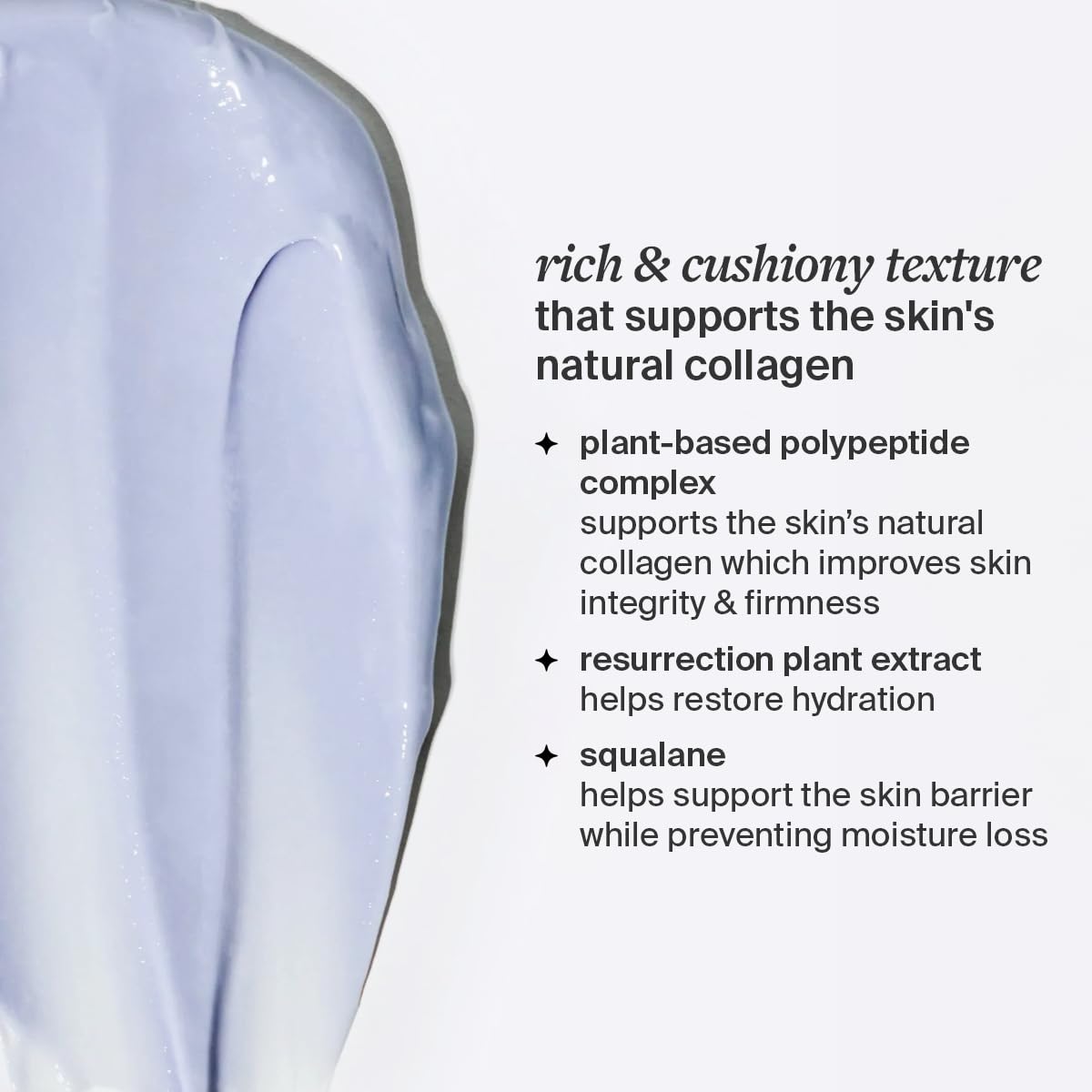 - POLYPEPTIDE COMPLEX: this peptide helps to support the skin's natural collagen production, which improves skin integrity, firmness and helps to reduce the appearance of fine lines and wrinkles