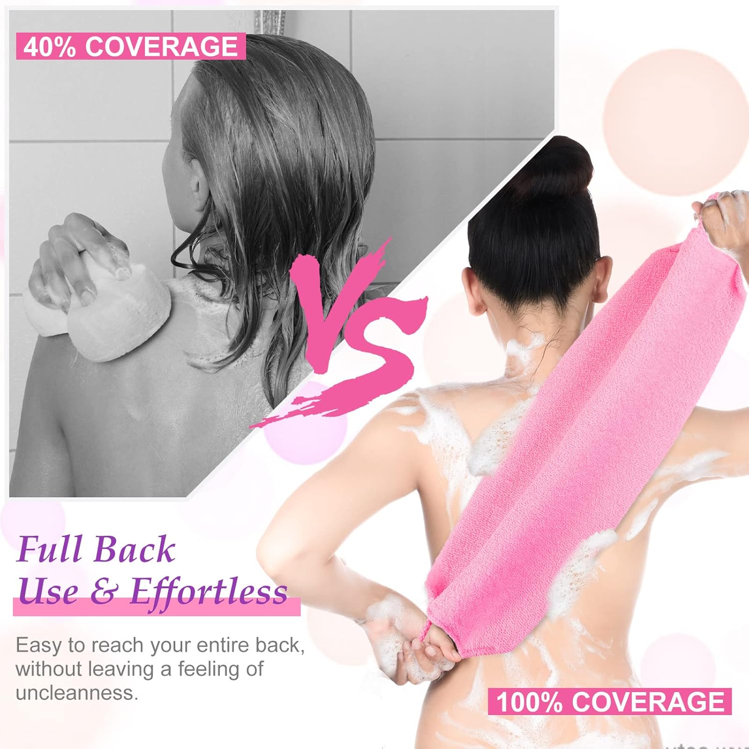 - Versatile Exfoliating Back Scrub: combined with handles at both ends, the exfoliating body scrubber can reach your back with ease, in addition, this washcloth for back is also suitable for most inaccessible shoulders, back, and lower back areas, helping rinse dirty easily