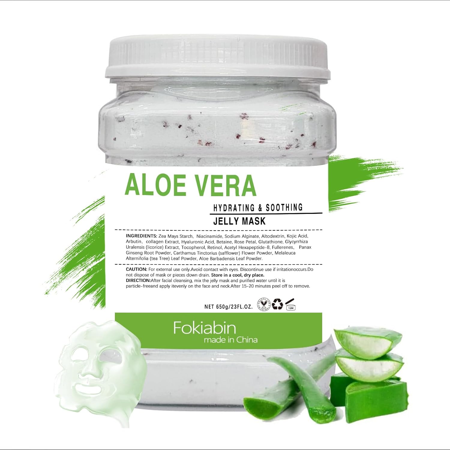 Jelly Mask for Facials, Hydrating & Moisturizing Peel-Off Rubber Gel Face Mask Skin Care for Deep Hydration & Glow, 23 Fl Oz Jar Professional Spa Use for All Skin Types with Aloe vera essence