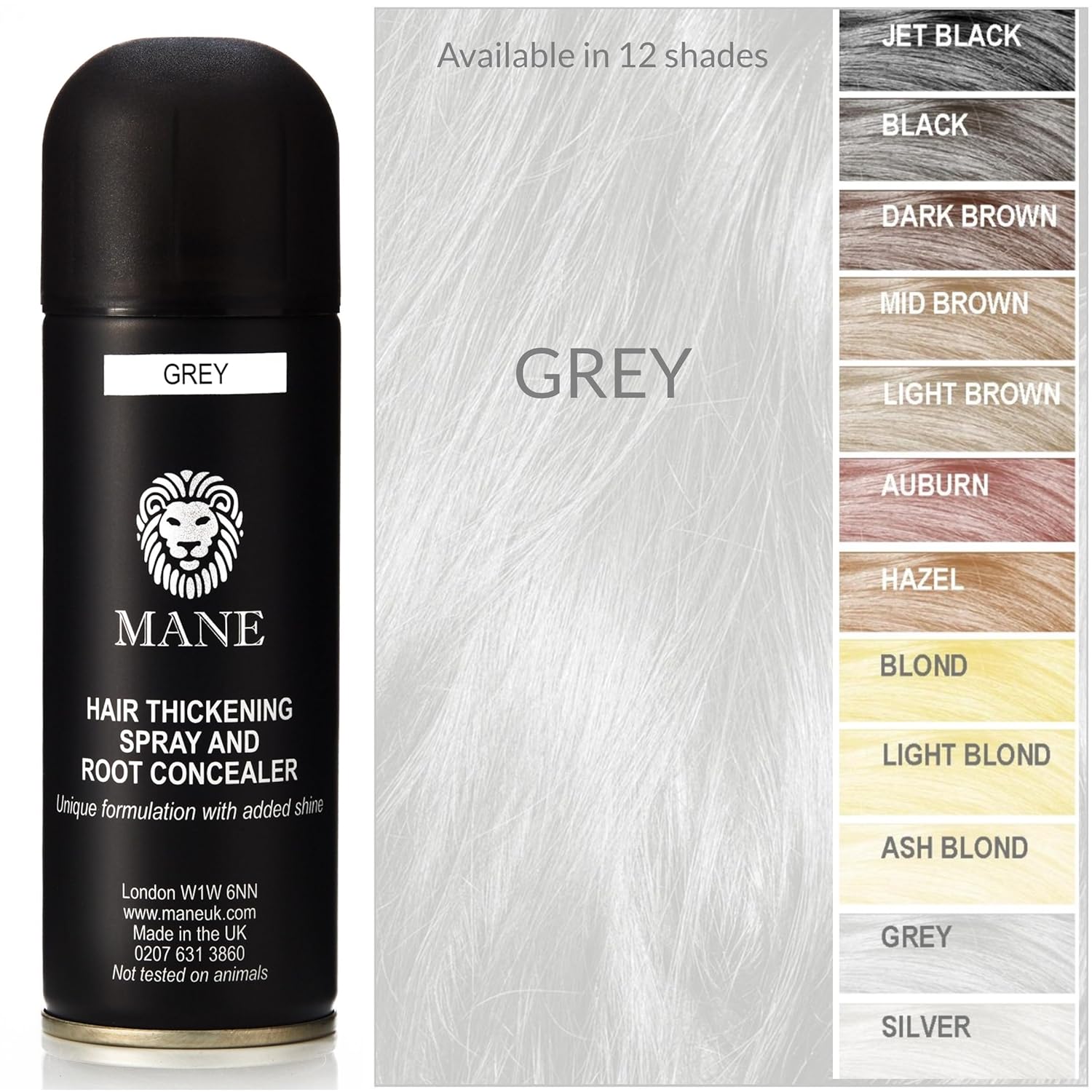 Hair Thickening Fiber Spray by Mane (200 ml, Grey)