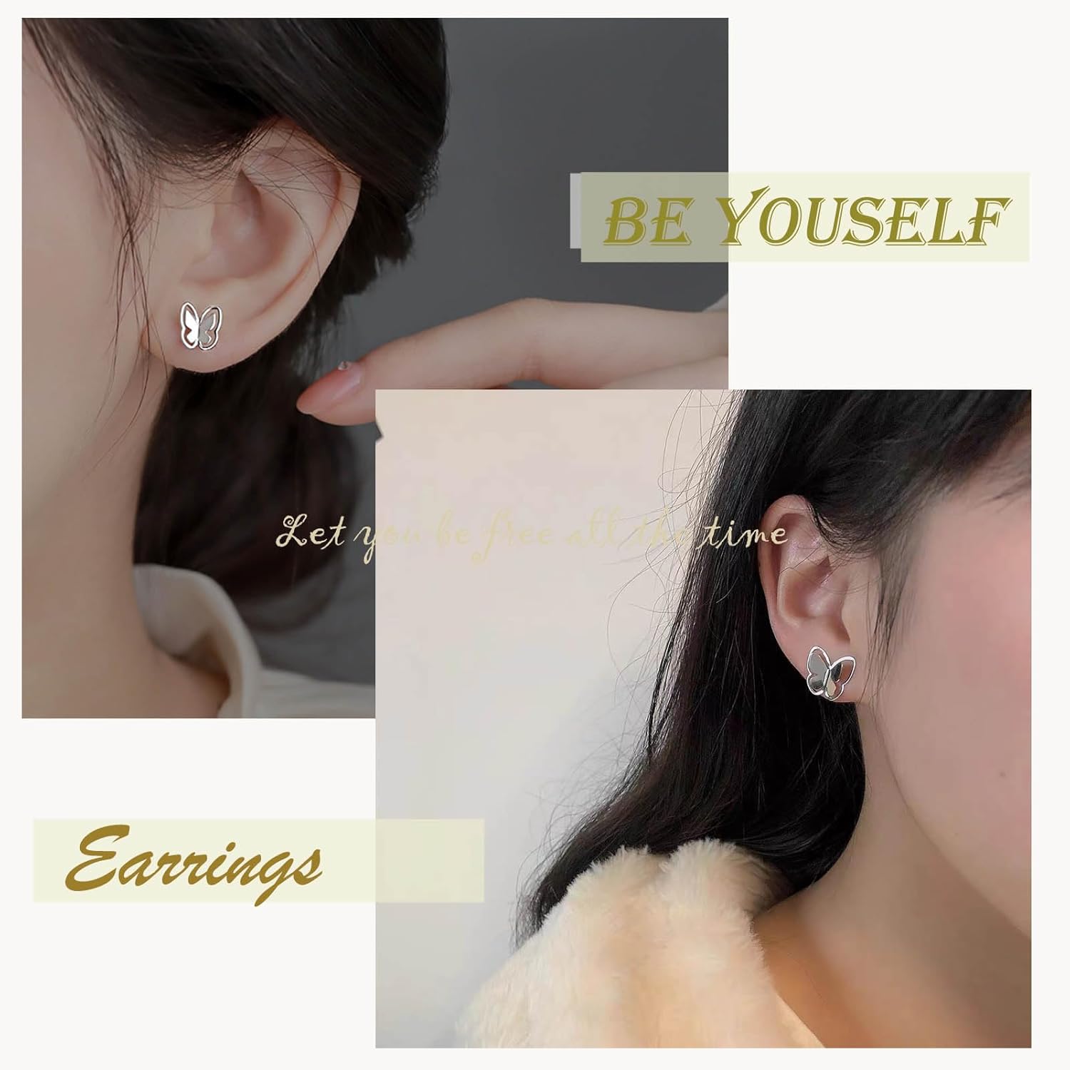 Tiny Butterfly Studs Earrings Vintage Silver Butterfly Earrings Statement Charm Layered Hollow Butterfly Cartilage Earrings Minimalist Butterfly Earrings Jewelry for Women