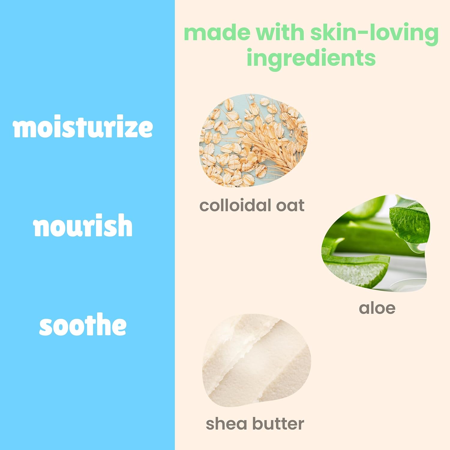 - Nourishing formula made with soothing colloidal oat and whipped shea butter.