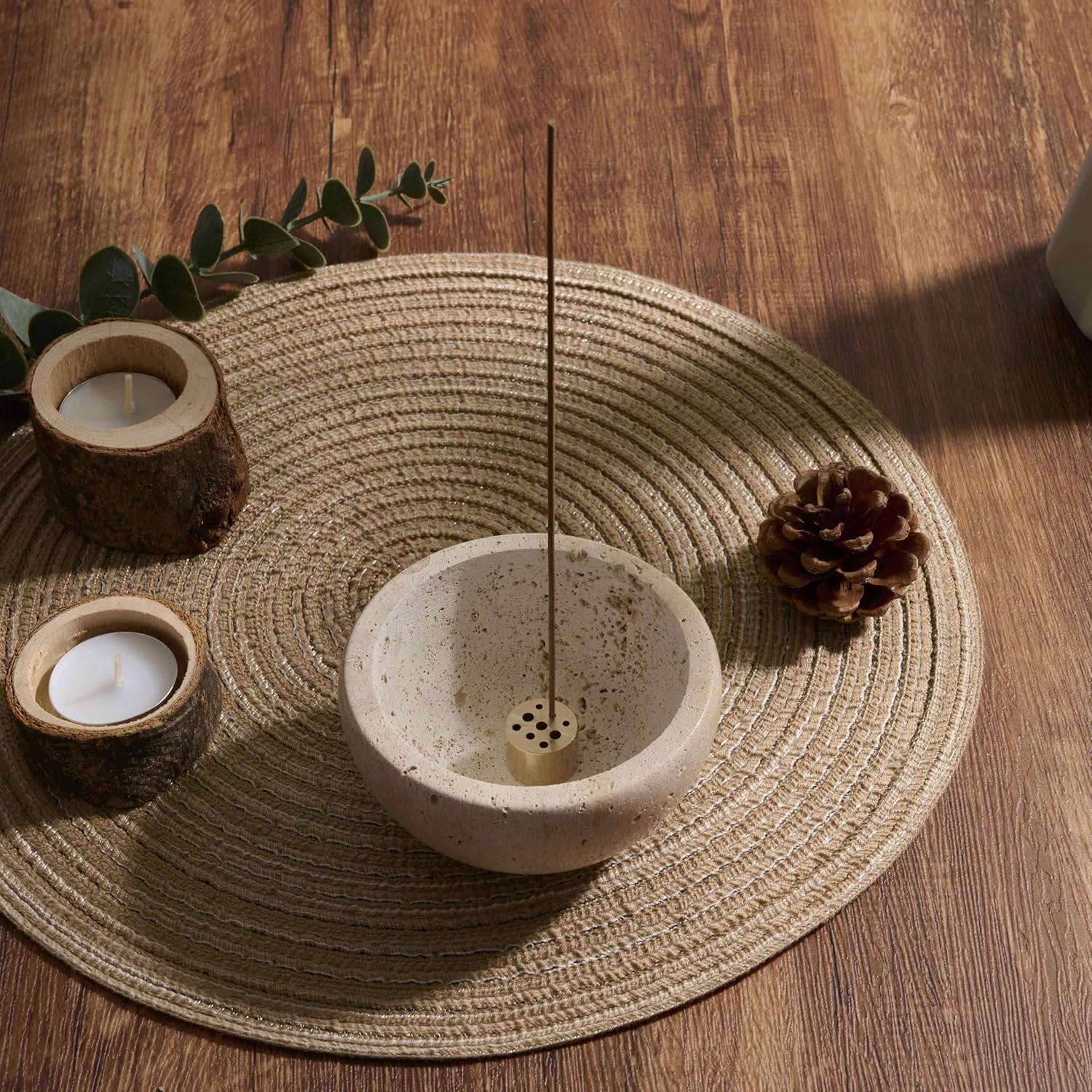 - Modern and Elegant Stone Design With its sleek, modern stone aesthetic, this incense burner and ash catcher enhances the ambiance of any room. Its sophisticated appearance is perfect for anyone appreciating simple elegance and refined decor, including lovers of Japanese incense styles.