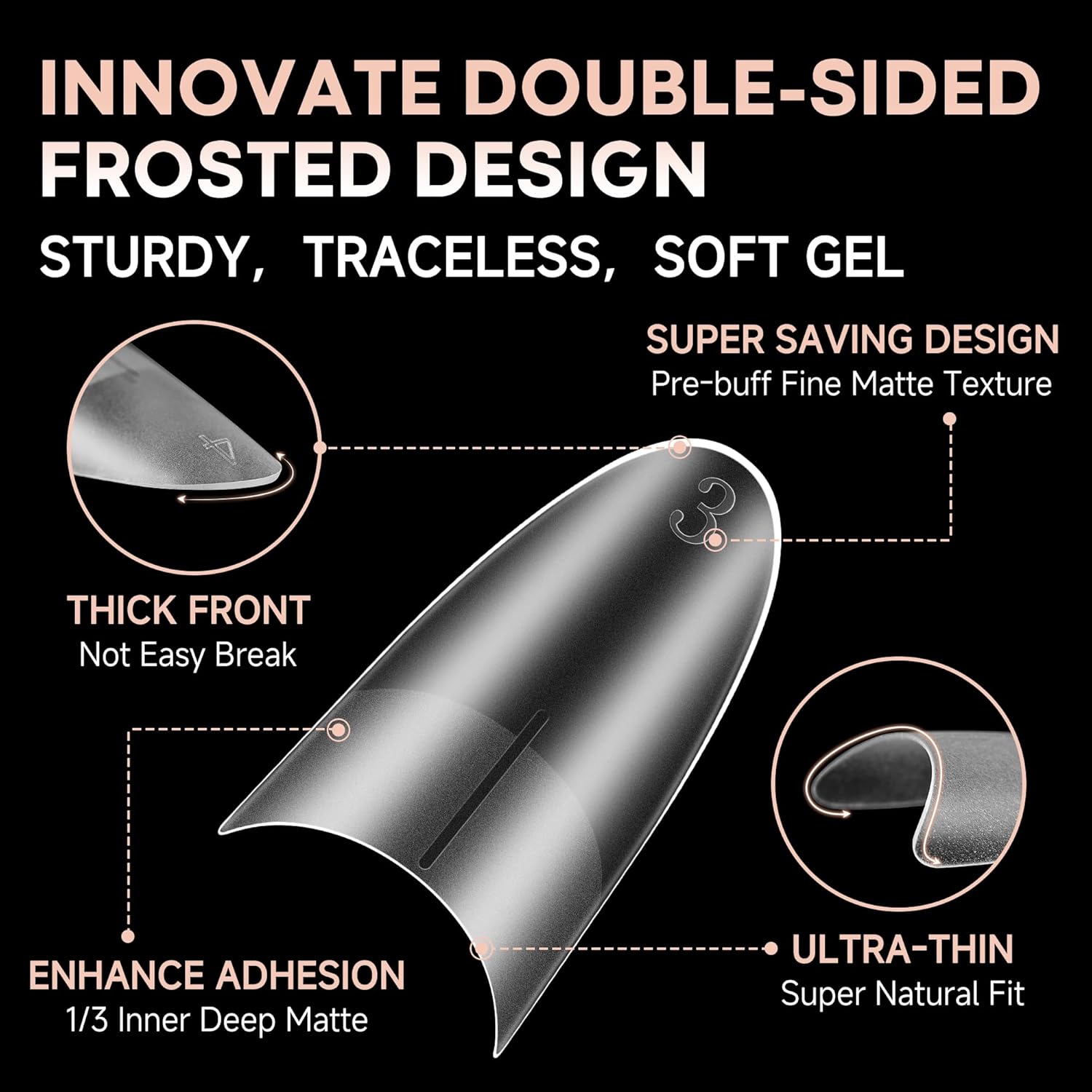 - 🎉 NEWLY DOUBLE SIDE MATTE TEXTURE-Our medium almond gel nail tips feature new double-sided matte nail tips design, no extra filing required! The outer wall makes it easier to apply nail polish and gives a glossy finish. The inner deep matte firmly adheres to the nail without worrying about the nail pop off easily. Easily get beauty that lasts 28+ days. We are committed to bringing you professional, efficient and safe nail care.