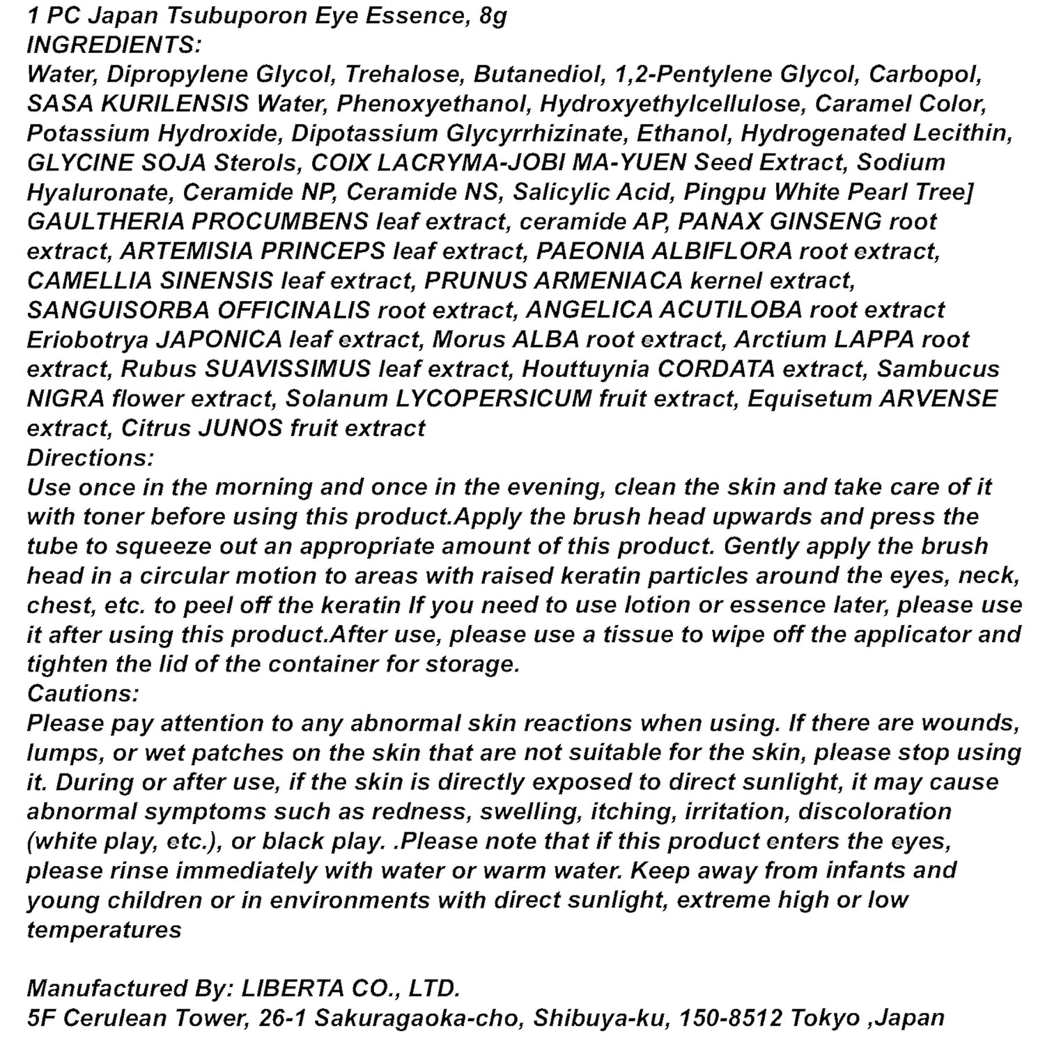 1 PC Japan Tsubuporon Eye Essence Tsubu Removal Eye Essence, Smoothing Eye Skin, 8g