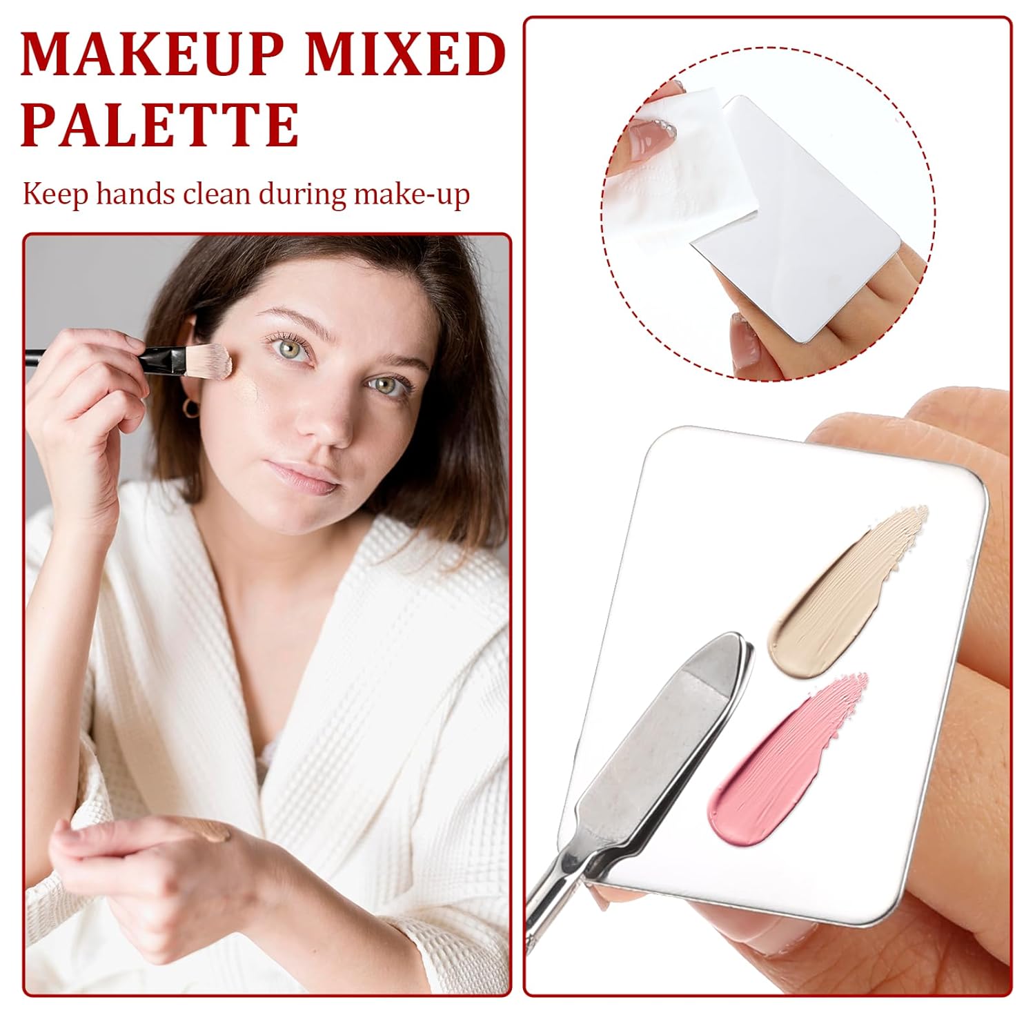 - Convenient to Use: Stainless steel foundation palette comes equipped with a handle, making it easy to hold and control while applying makeup. The handle ensures that the palette remains steady and stable as you mix and blend your colors.