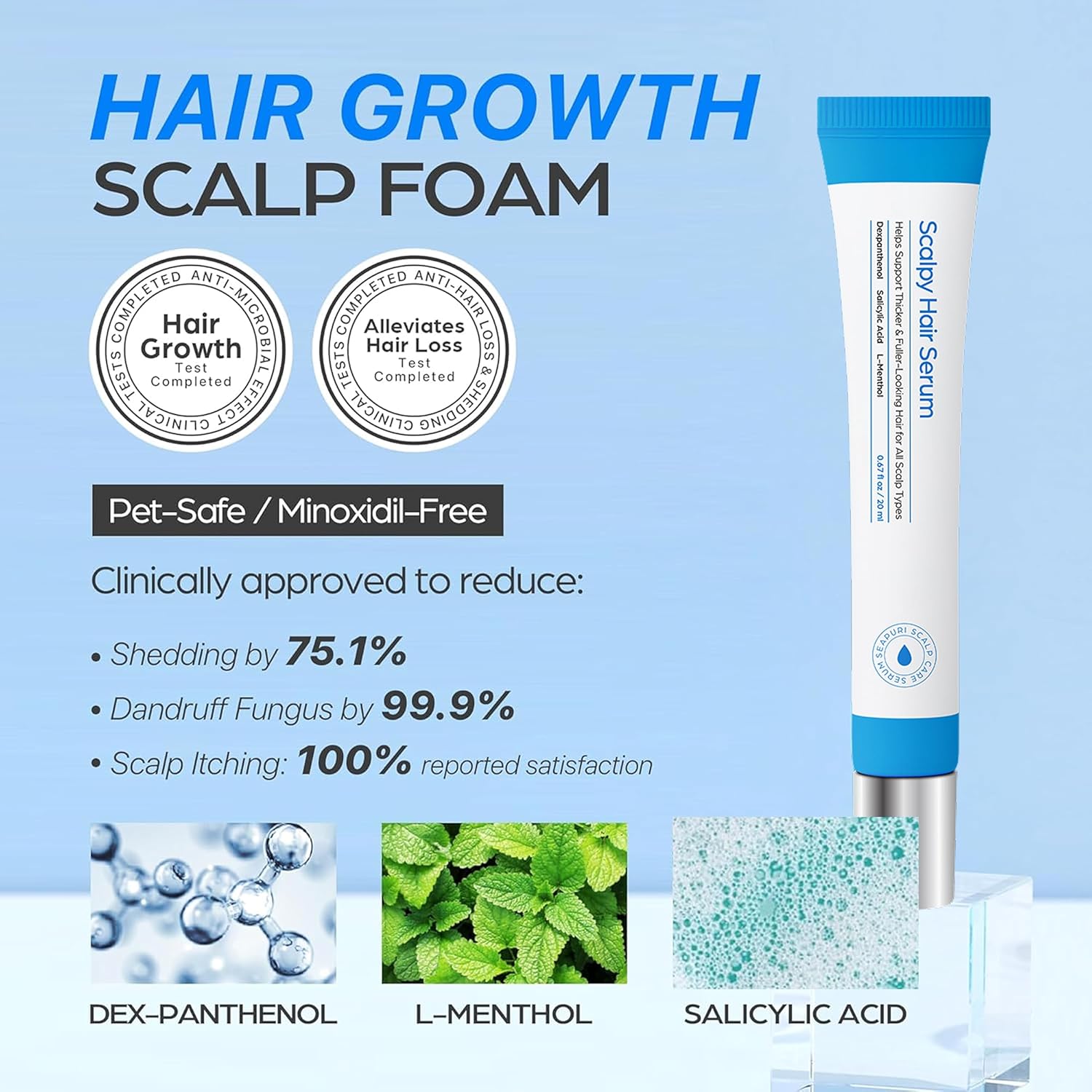 Scalpy Hair Growth Serum for Men & Women for Hair Loss & Thinning | Scalp Treatment with Salicylic Acid, Menthol, Dexpanthenol | Non-Greasy, Lightweight | Exfoliates Dandruff & Soothes Itch