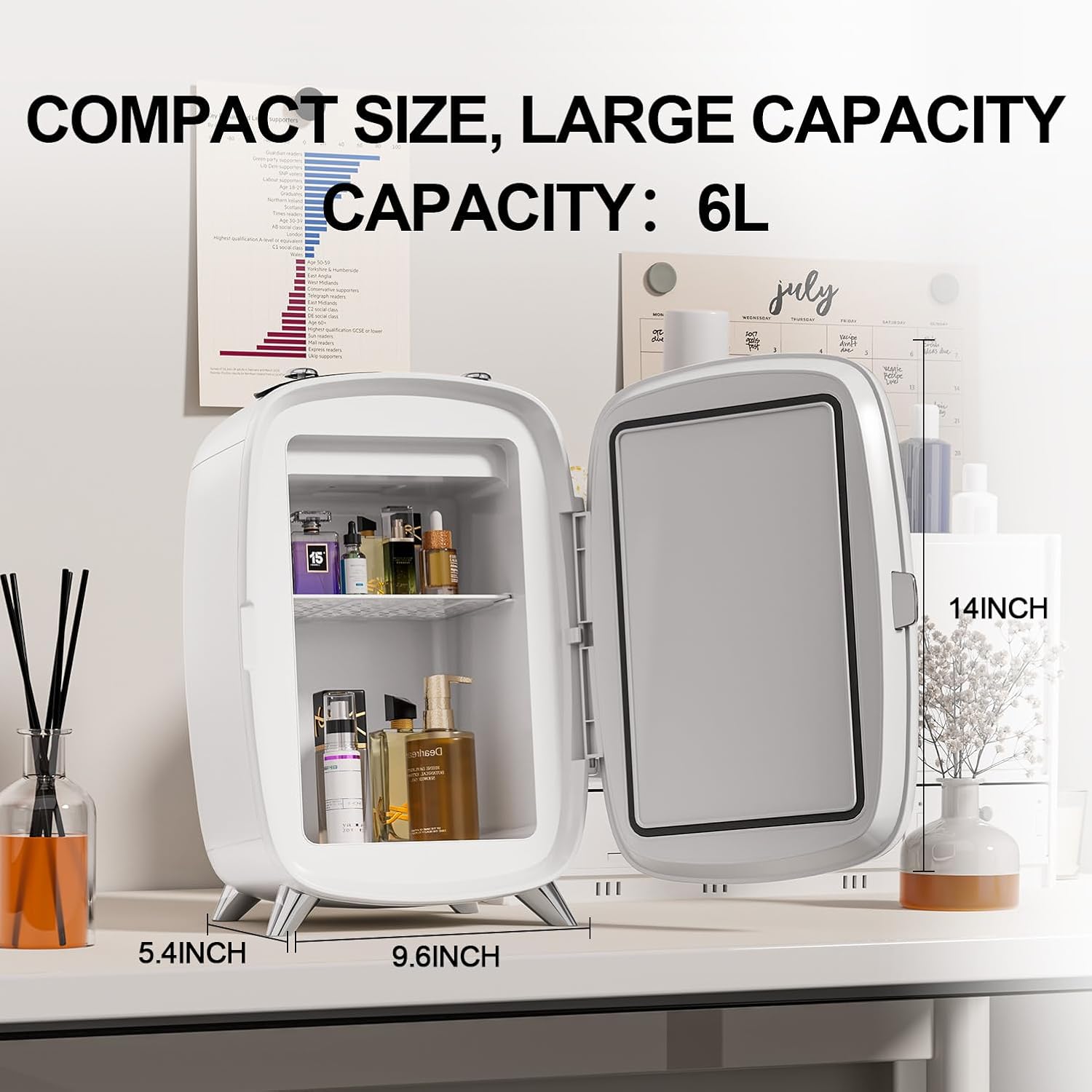 - Cooling Below Room Temp: Equipped with advanced cooling system that provides temperatures ranging from 59°F (15°C) to 63°F (17°C) when the ambient is 77°F (25°C). It is an ideal choice for keeping creams, serums, and other beauty products fresh. Additionally, its versatile design allows you to store items like breast milk or medications, making them easily accessible.
