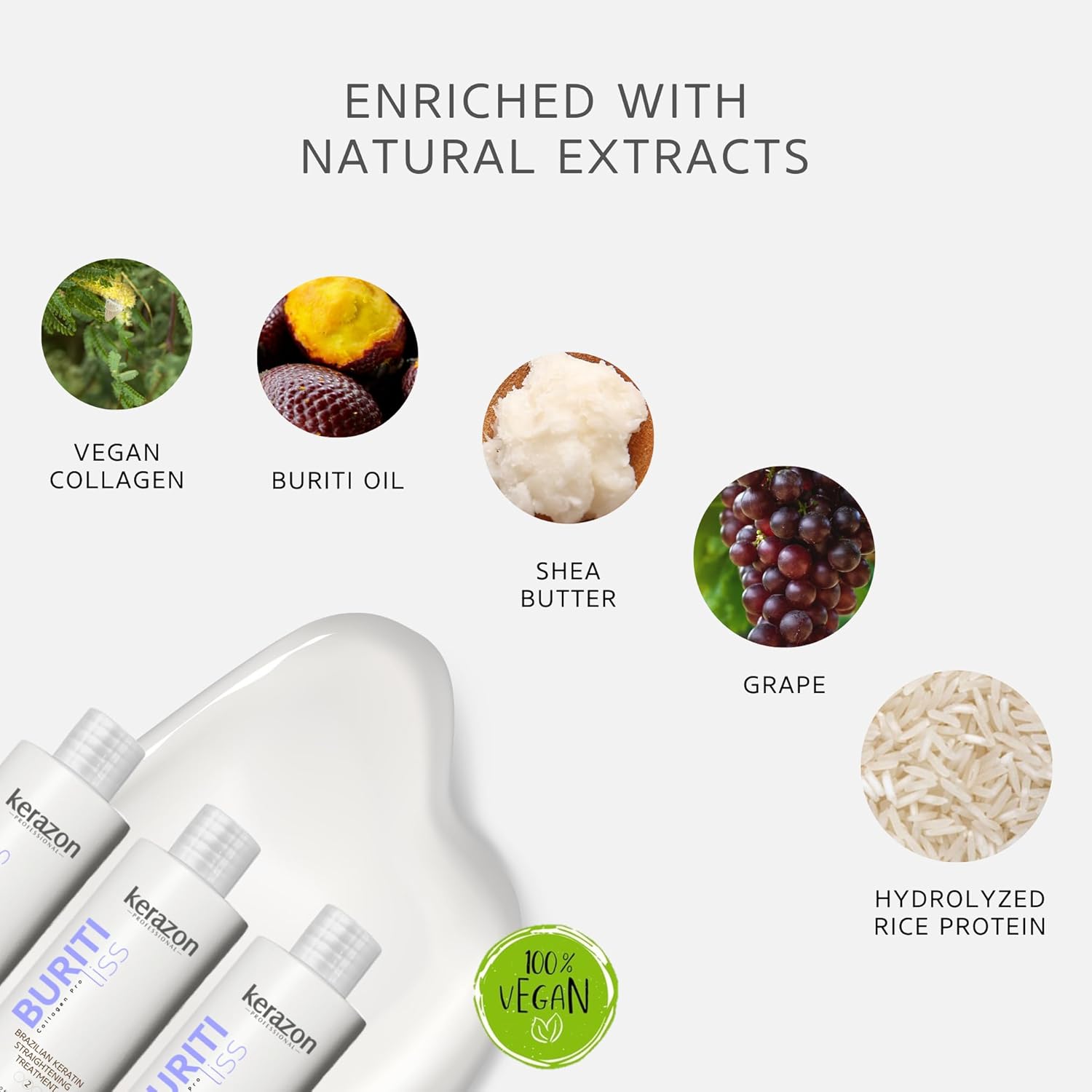 - Stronger, Healthier Strands – Vegan Collagen and Hydrolyzed Rice Protein fortify the hair, improving elasticity and reducing breakage.