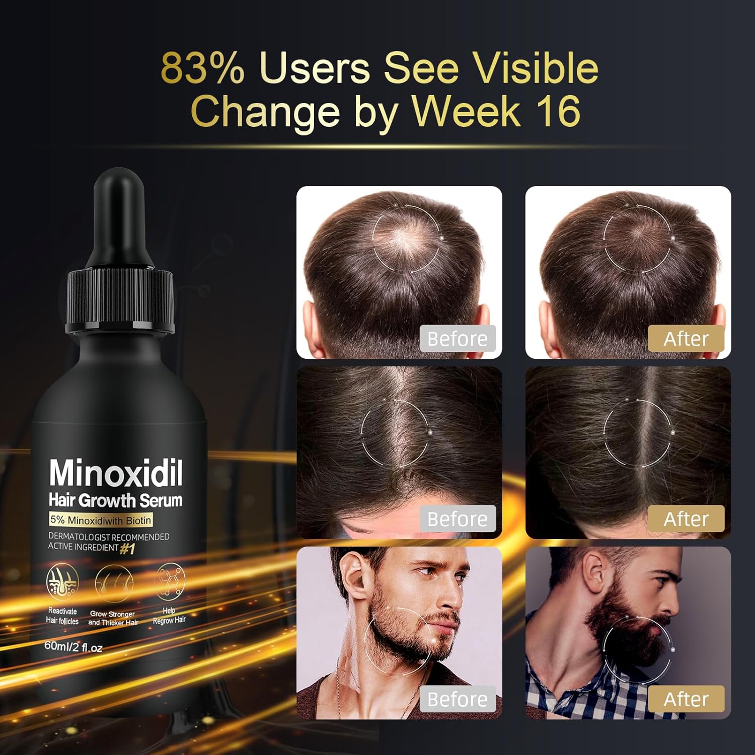 5% Minoxidil for Women Hair Growth - Hair Regrowth Treatment for Men and Women - Minoxidil Hair Growth Serum for Fuller, Thicker Hair