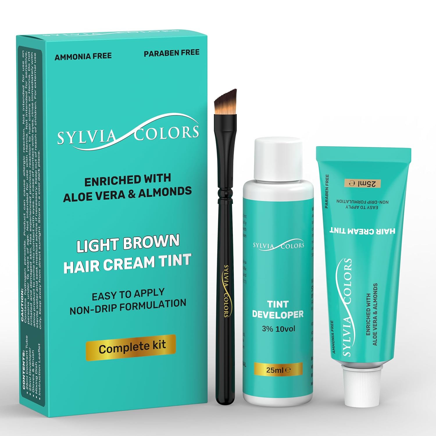 Professional Tint Kit Semi-Permanent 40 Applications Lasts 4-6 Weeks Spot Coloring Set WaterprooF (Light Brown, 25 ML)