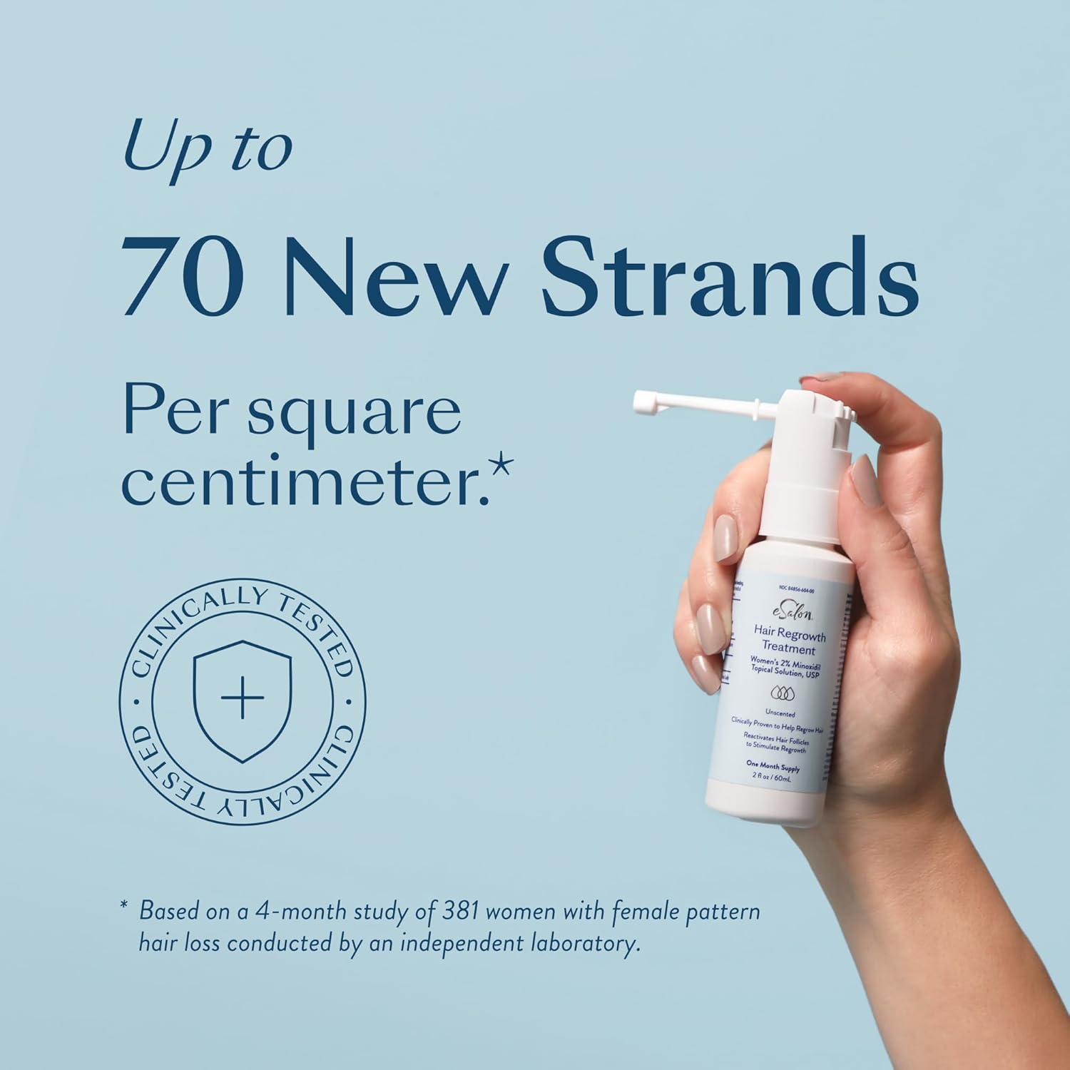 eSalon Hair Regrowth Treatment, 2% Minoxidil Topical Solution, 2.7 fl oz, One Month Supply, for Women