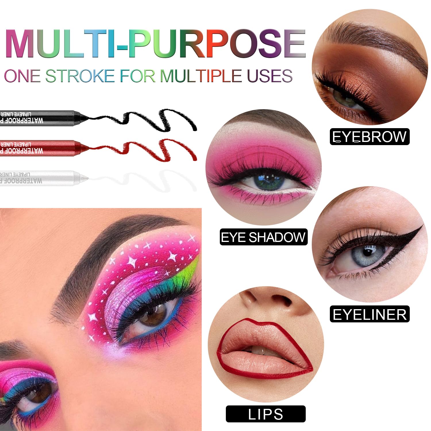 - 【Usage& Occasions】7 different Colorful Eye Liner, ideal for Party, Cosmetic Show, Live Show, Prom Night, Dance Party, and Wedding Makeup. With unique package, would be the perfect gift to your friends, bestie, families.