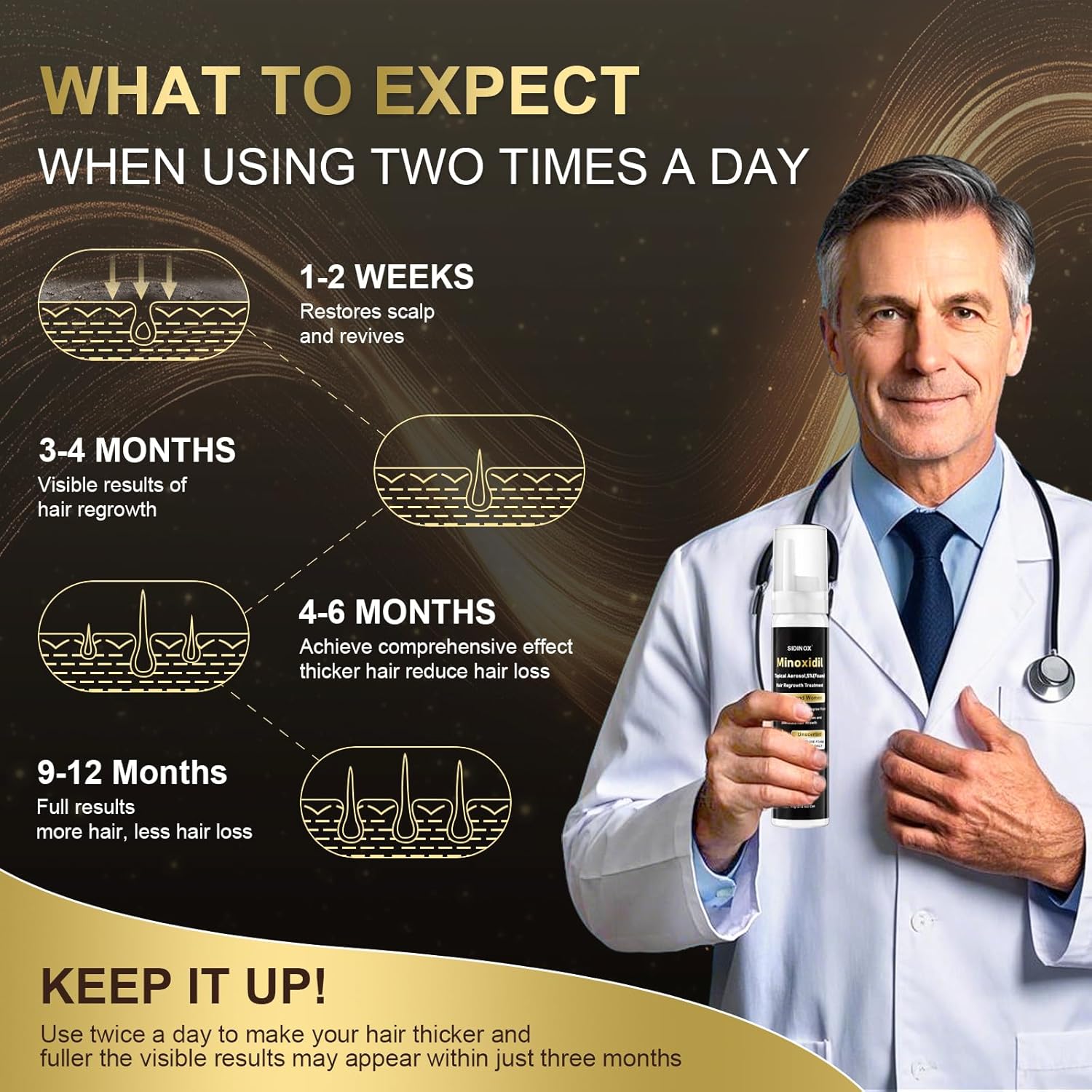 - 【Easy to Use, Fast & Non-irritating】: This product makes hair loss treatment is easy in your daily hair care routine, apply 1ml foam to your scalp twice daily & massage it in. Visible results may appear in just 3 months. It is also effective for promoting beard and eyebrow growth.