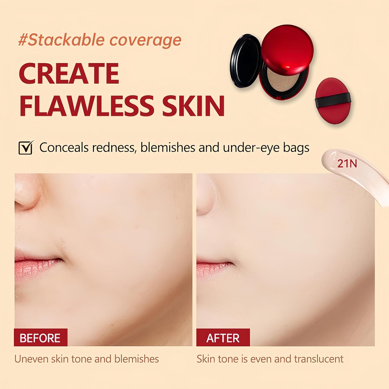 - 【Flawless Full Coverage】Achieve the perfect complexion effortlessly with full coverage that conceals imperfections, redness, and blemishes without caking or creasing, leaving skin smooth and photo-ready.