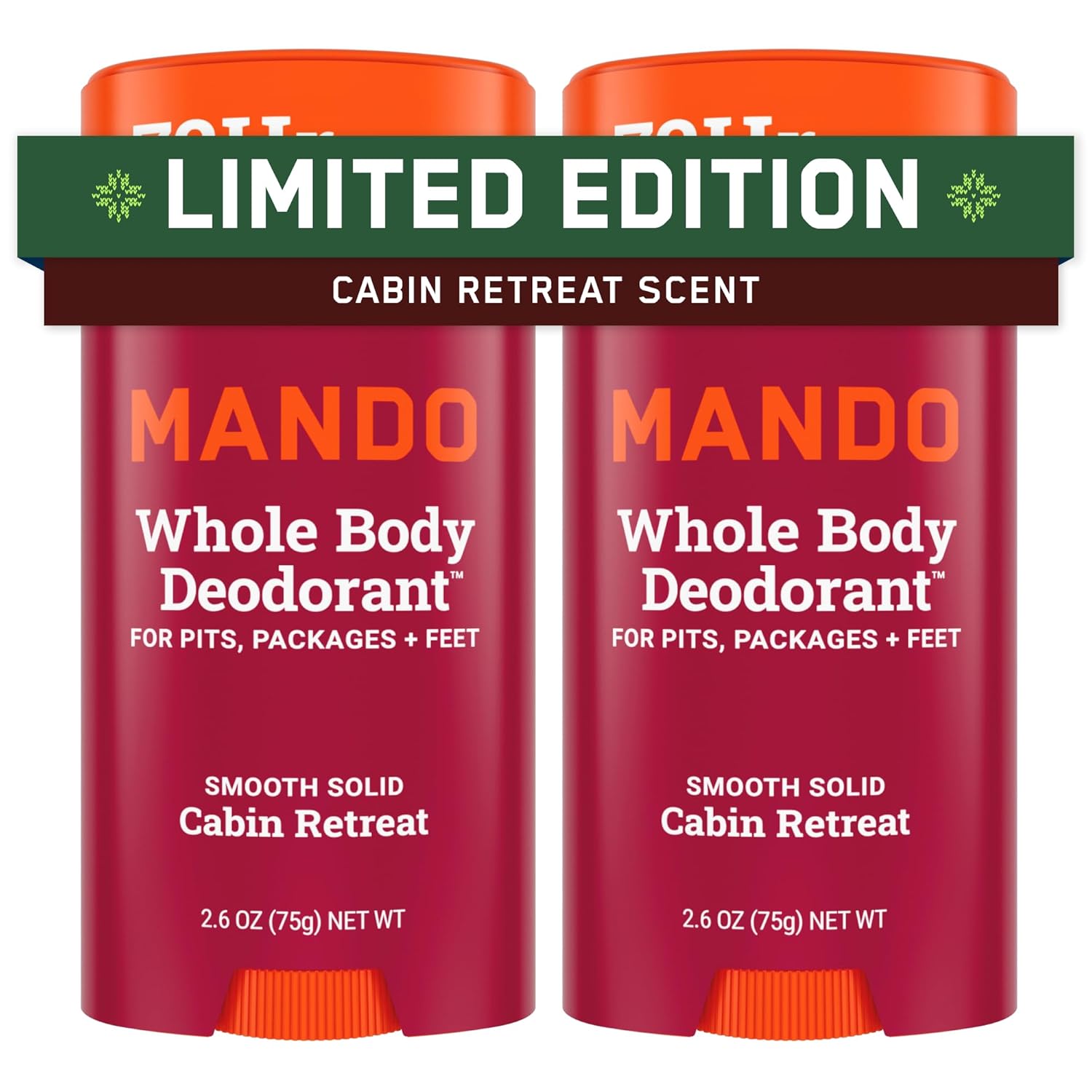 Mando Whole Body Deodorant For Men - Smooth Solid Stick - 72 Hour Odor Control - Aluminum Free, Baking Soda Free, Skin Safe - 2.6 Ounce (Pack of 2) - Cabin Retreat Limited Edition Scent