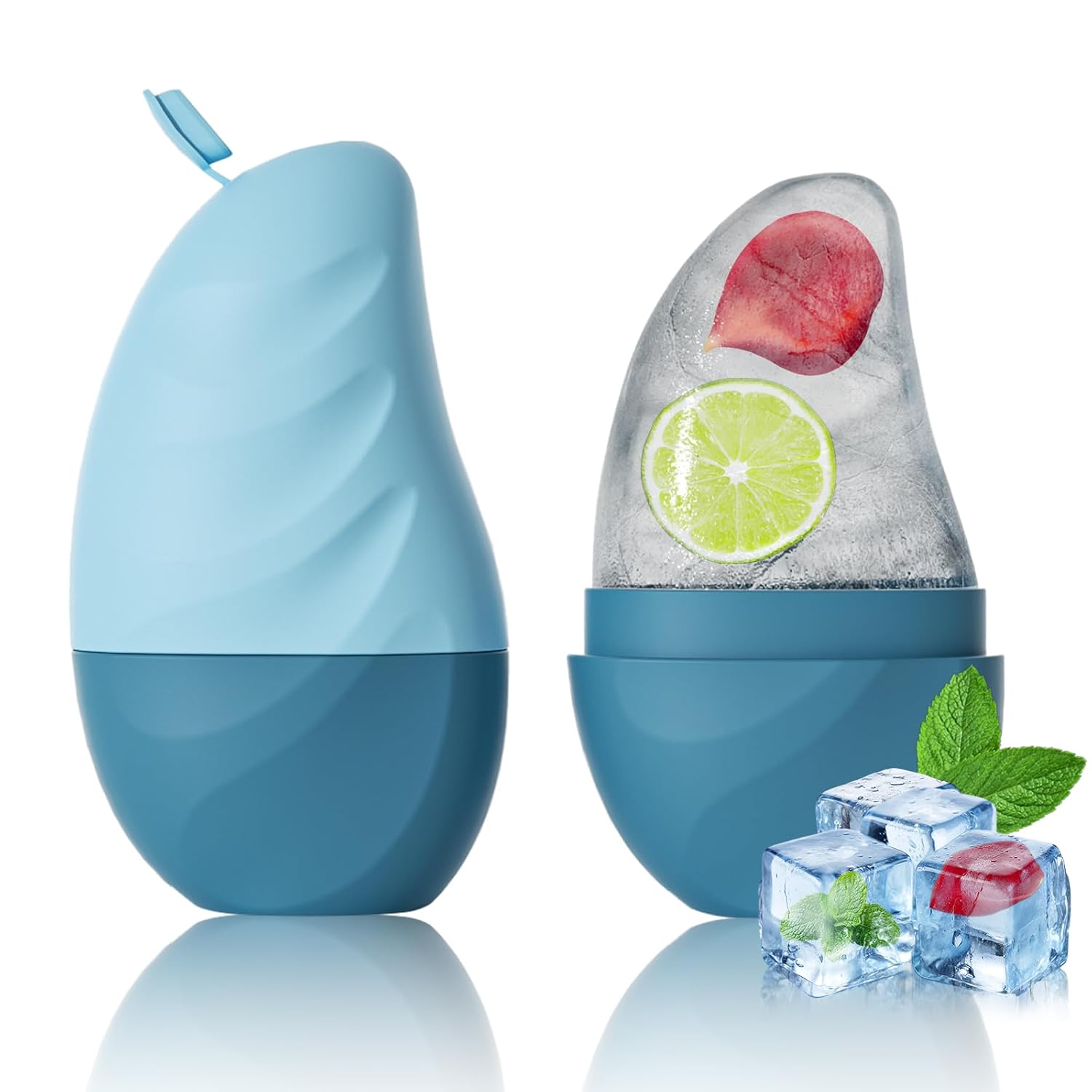Silicone Facial Ice Cube Roller Massager, Facial Beauty Care Tool, Reusable Face Ice Mold - Brighten Skin, Reduce Puffiness for Face & Eyes (Blue)