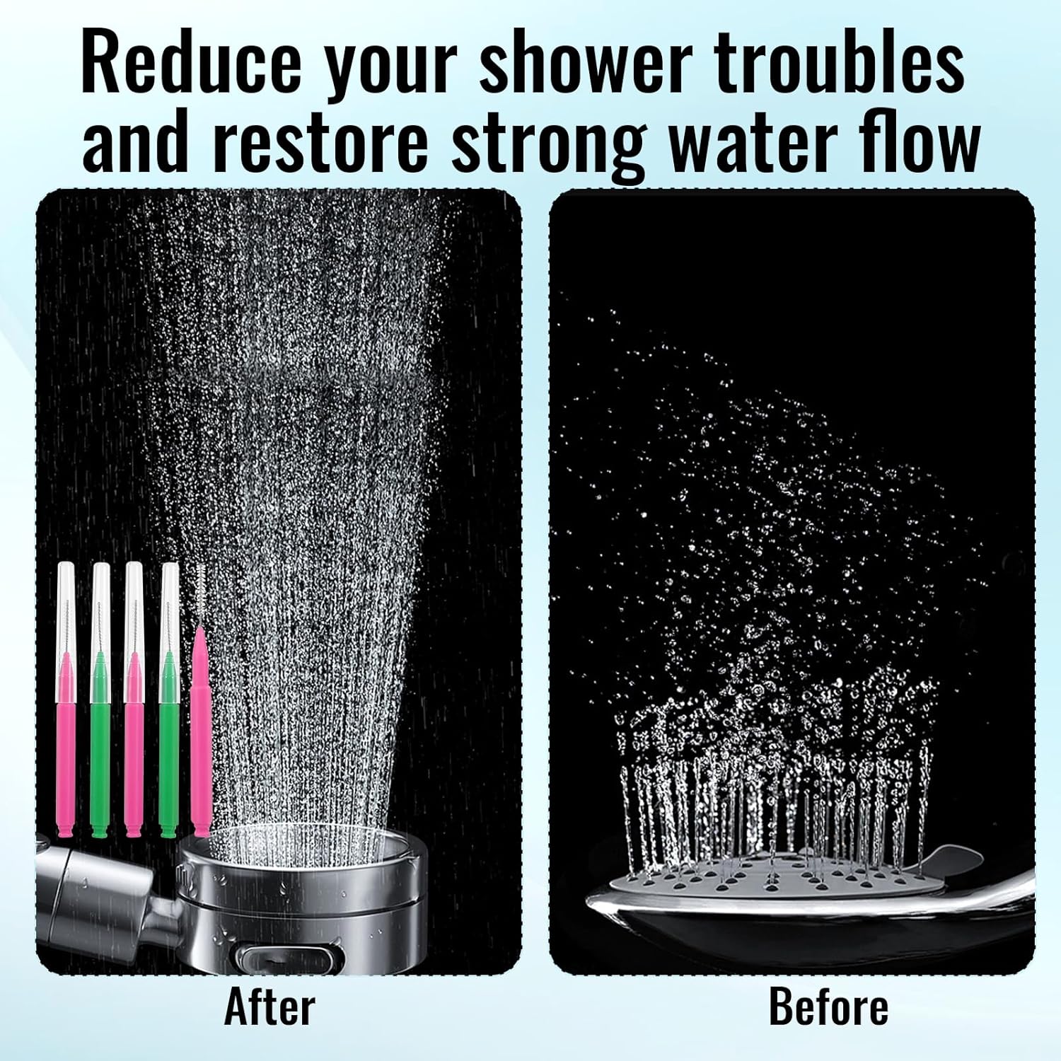 - Package Includes - This shower head cleaning brush package contains 40 showerhead cleaning brushes and 10 nozzle unclogger picks. There are enough shower head cleaning brush small hole for you to use for a long time, which can meet your needs in different aspects