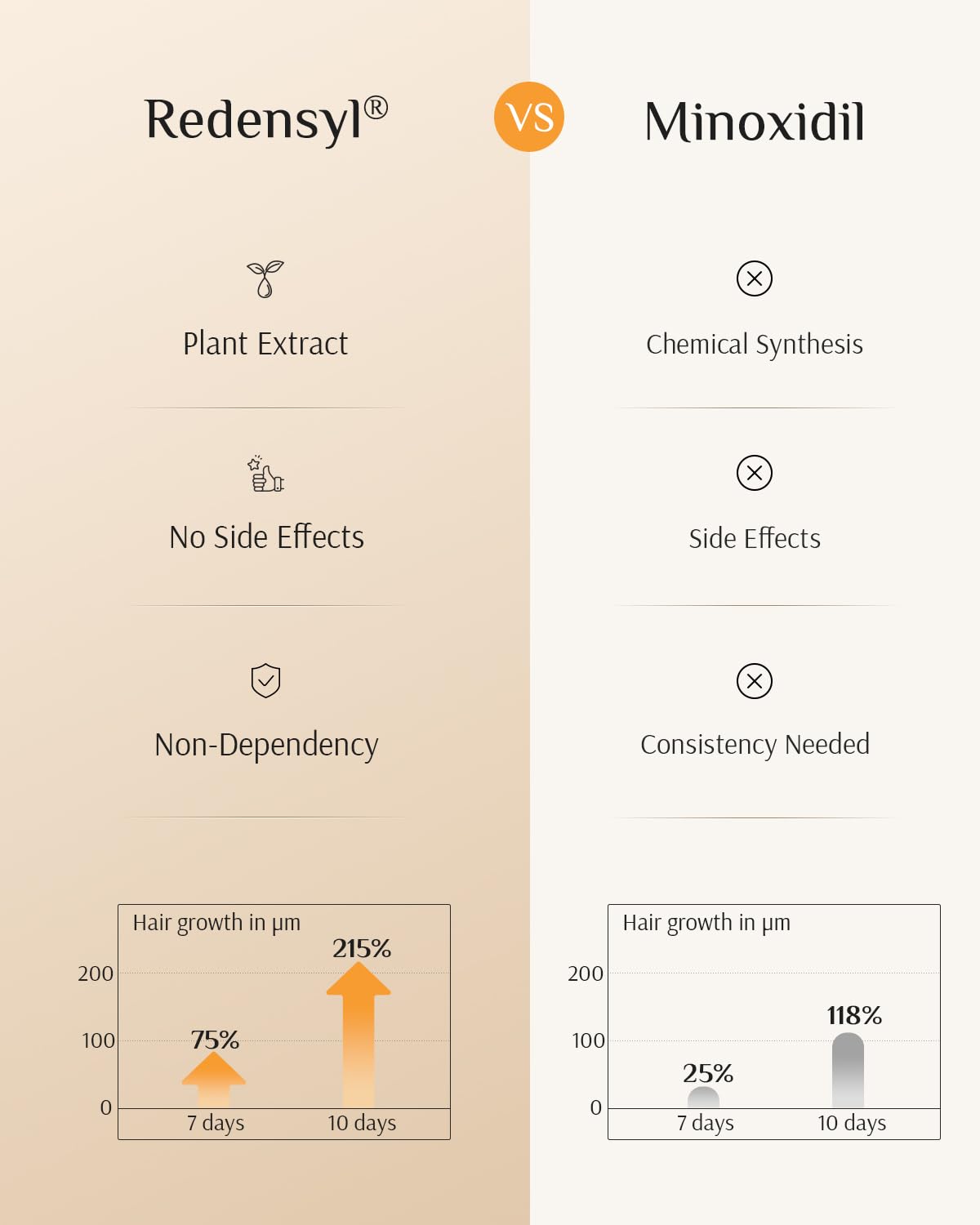 - 【Clinically Proven Results】 Users of the serum containing 3% Redensyl experienced a 9% or greater increase in hair growth and a 17% reduction in telogen effluvium. Redensyl achieved nearly twice the growth of hair follicles compared to Minoxidil without any side effects.