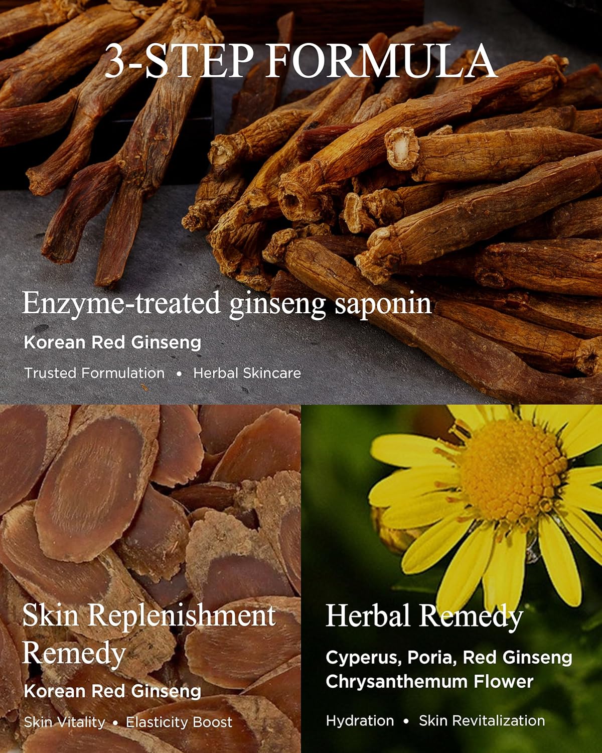 - KOREAN RED GINSENG TECHNOLOGY: Premium red ginseng extract with natural saponin compounds penetrates deeply to support skin elasticity and promote luminous complexion through traditional oriental medicine wisdom