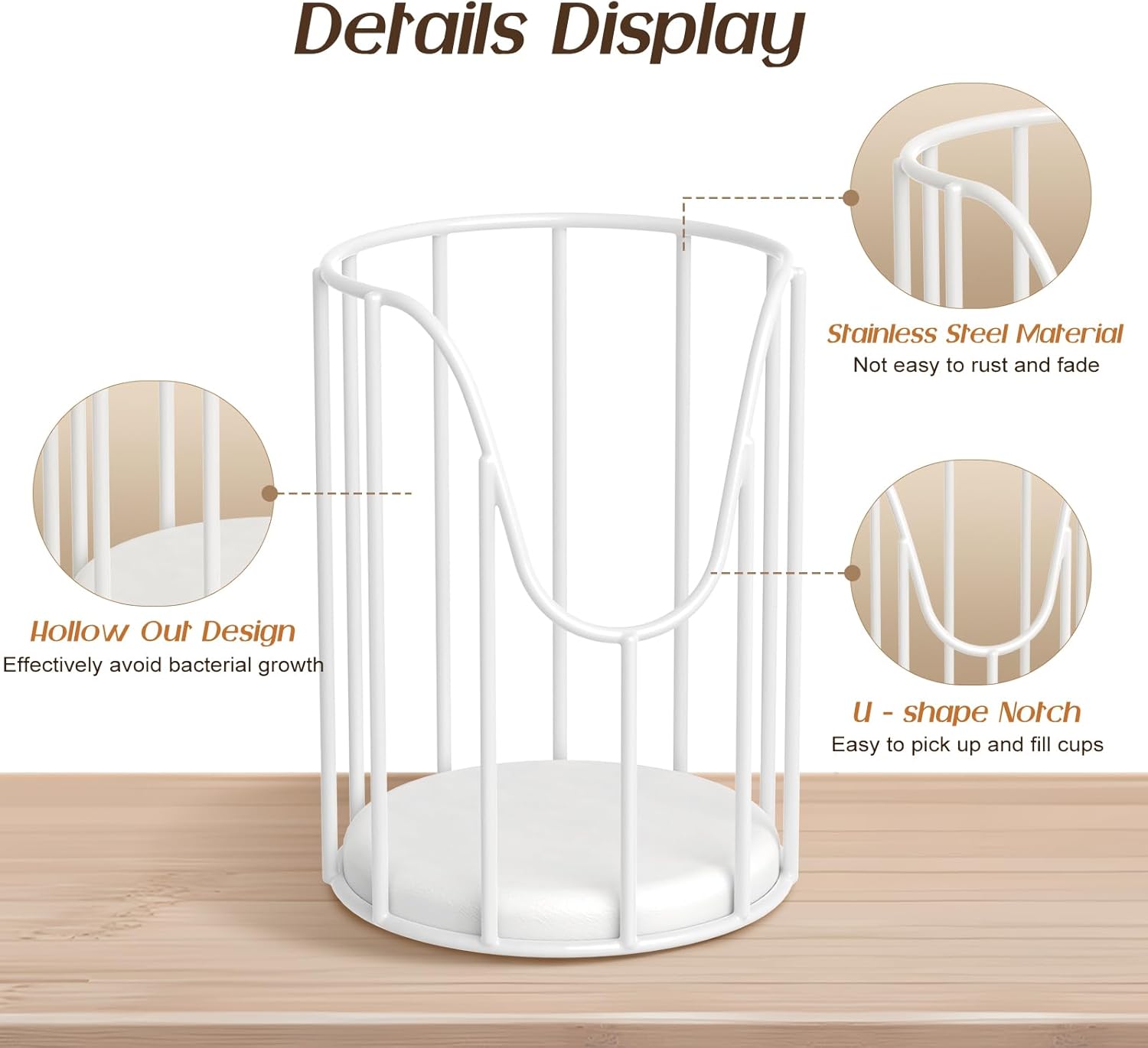 - Smart U-shape Notch Design: The Dixie cup holder features a U-shaped design on the front, making it easy to take out and fill cups. It fits 3-5 oz paper cups, glass cups, and plastic cups. The hollow grid design allows you to see when it needs to be refilled.