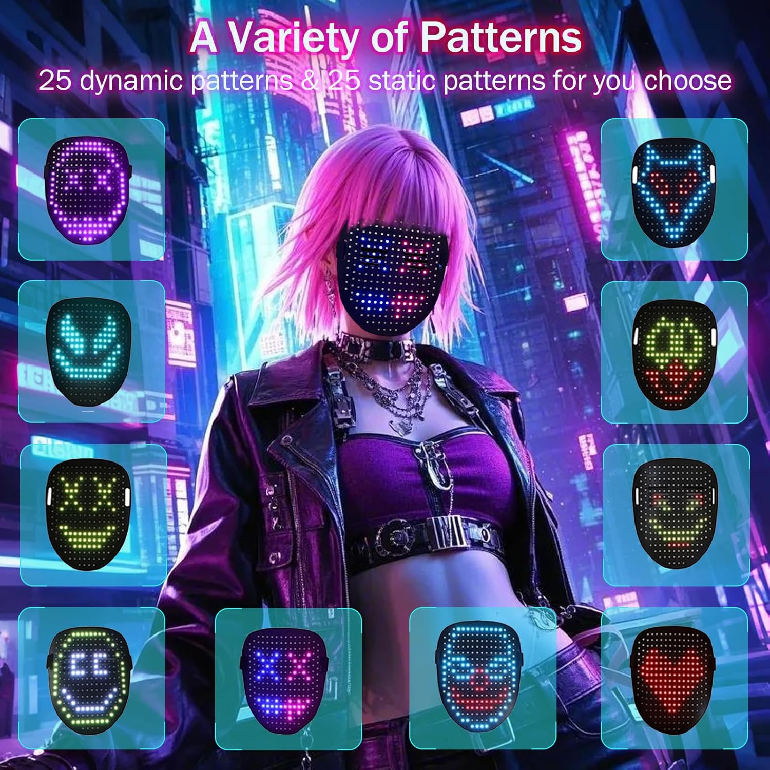 - 【Pattern Options】This LED mask comes with 25 dynamic display modes and 25 static images. As a full-face LED mask, it's an amazing piece for costumes and cosplay, sure to grab everyone's attention wherever you go.