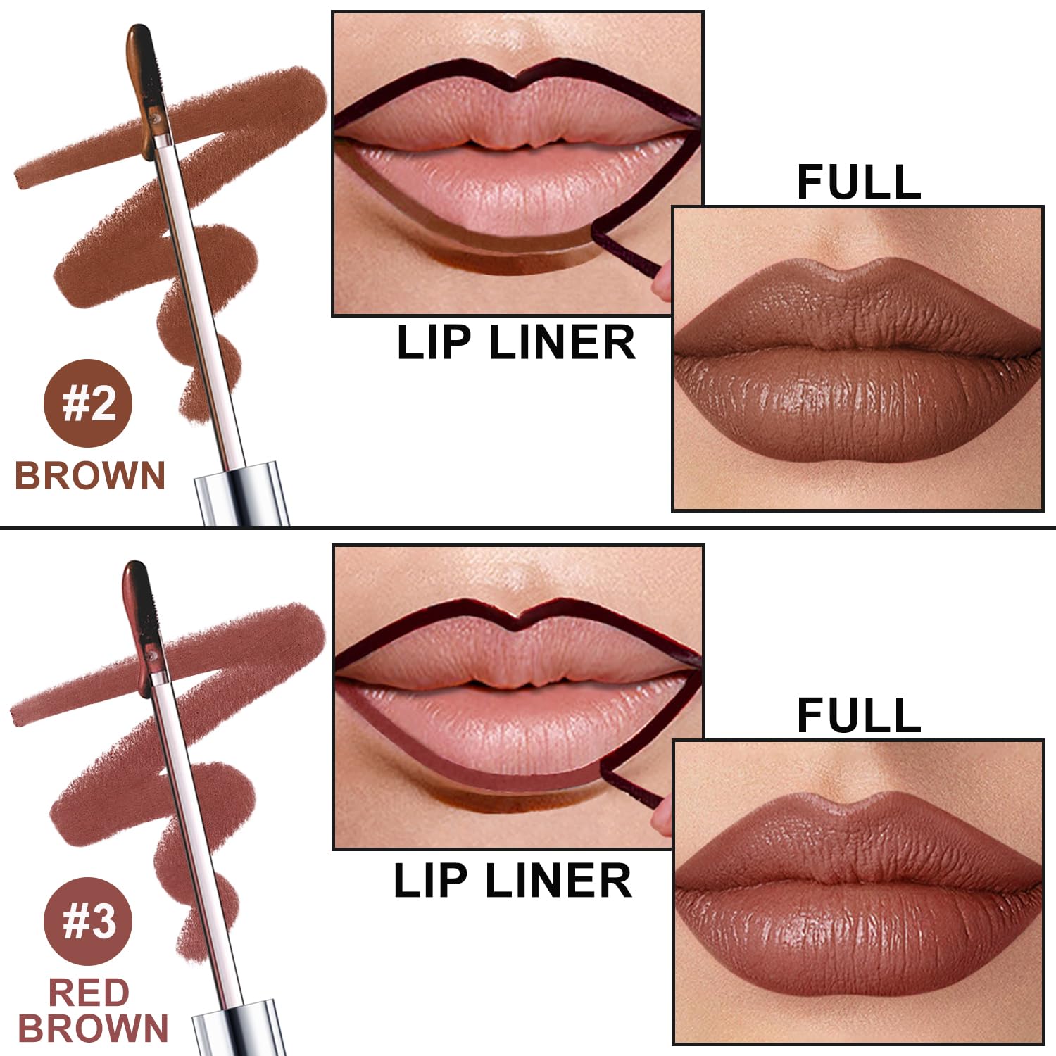 2 Colors Peel Off Lip Liner Stain Kit, Long Lasting Waterproof Matte Finish Lip Tint Stains Makeup Set for Women, Trend Colors, Easy to Use, for All Skin Types, Tweezer Include (#2+#3)